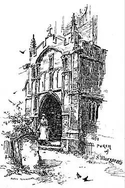 After the Roman occupation the areas outside the old northern and eastern city gates gradually became suburbs which the church of St Margaret would serve. The track skirting the northern wall opposite the church became the cities principal processional route known as Sanvey Gate, an early English derivative of Sacra Via or Holy Way.[4]