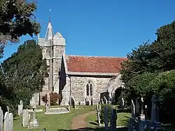 The church is medieval dating from the twelfth century.[1] The short tower contains a ring of 8 bells all cast by Whitechapel Bell Foundry: six in 1961 with two more added in 2017. The largest weighs 7cwt. The spire was added in the 17th century.