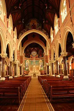 St Mary Star of the Sea is a Roman Catholic parish church in West Melbourne, Victoria, Australia. The foundation stone of the church was laid in 1882 and the building was completed by 1900. Since 2002, restoration has been ongoing to restore the church to its original state. Built with seating for over 1,200 people, it has been described as the largest parish church in Melbourne, in Victoria, or even in Australia.