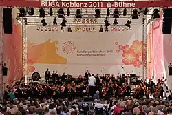 The Staatsorchester Rheinische Philharmonie, also known as the Rheinische Philharmonie, is a professional symphony orchestra in Koblenz, Germany. Founded in Autumn of 1945, it was adopted as an orchestra of the German state with state tax support in 1973. It is the resident orchestra of the concert venue Rhein-Mosel-Halle in Koblenz. Former principal conductors of the orchestra include Walter May, Carl August Vogt, Claro Mizerit, Walter Crabeels, Pierre Stoll, James Lockhart, Christian Kluttig, and Garry Walker. The orchestra has a good reputation internationally.[1] Conductor Benjamin Shwartz serves as the orchestra's current musical director.[2]