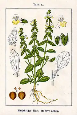 - ^ "Stachys annua annual yellow woundwort". The Royal Horticultural Society. Retrieved 2 January 2021.