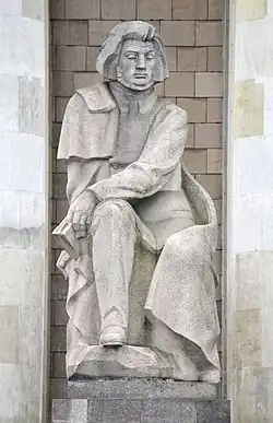 Julian Marchlewski was born in Włocławek in 1866. The unveiling of Horno-Popławski's monument occurred on May 1, 1964, with the participation of Zofia, Marchlewski's daughter.[38] Built of granite, the five-meter-high monument was in the socialist realist style. On the pedestal was an inscription "To Julian Marchlewski, the Great Internationale Patriot, Society of Włocławek and Bydgoszcz. May 1, 1964".[39]