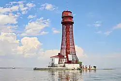 Stanislav Range Front Light or Small Adzhyhol Lighthouse is an active lighthouse and range light, located on a concrete pier on a tiny islet about 7 kilometres (4.3 mi) west northwest of Rybalche, about 35 kilometres (22 mi) from Kherson, Ukraine. Together with Adziogol lighthouse, located 6.49 kilometres (4.03 mi) 109° from it, it serves guiding ships entering the Dnieper River.