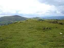 The hill is home to the Mitchell's Fold stone circle.[1] Along the path leading from the Fold across Stapeley Common stand the Cow Stone [2] (a single standing stone or menhir) and the Stapeley Hill Ring Cairn.[3][4] There are two Bronze Age cairns at or near the summit; such round cairns are also a common feature of Welsh mountain summits.