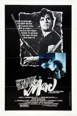Stark Raving Mad is a 1981 American crime film directed by George F. Hood, written by Don Gronquist, and starring Russ Faust and Marcie Severson. It depicts a fictionalized account of the Charles Starkweather and Caril Ann Fugate killings of the 1950s. It was released in January 1983.