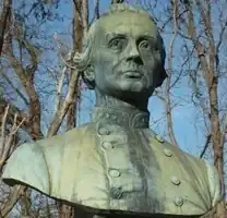 Gist was initially buried in a cedar box near the Franklin battlefield on the property of a sympathetic local family.[37][39] A monument at this location (35°53′19.62″N 86°52′41.94″W / 35.8887833°N 86.8783167°W) reads:[40]