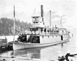 Steam navigation on Lake Coeur d'Alene lasted from the 1880s to the 1930s. More steamboats operated on Lake Coeur d’Alene than on any other lake west of the Great Lakes.[1] The high point of steam navigation was probably from 1908 to 1913. After that railroads, and increasingly automobile and truck traffic on newly built highways supplanted steam navigation, although some vessels continued to be operated until the mid-1930s.