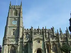Historic England describe the parish church of St Mary as "One of the finest Perpendicular churches in the country, its wealth coming from Steeple Ashton's woollen industry".[6] Pevsner writes that the church "fairly bristles with pinnacles – a gay and fantastical sight".[7]