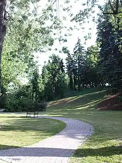 The park is located in the district of Żoliborz, within the neighbourhood of Old Żoliborz, between Wilson Square, Krasińskiego Street, Mickiewicza Street, Mierosławskiego Street, and the buildings at Czarnieckiego Street.[1][16] Its main entrance was placed at the Wilson Square, and the remaining ones, at Krasińskiego Street and Mierosławskiego Street.[4] The park has a total area of 6 ha, and a varied landscape, corresponding to the former ramparts and moats of fortifications in the area.[16]