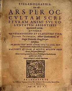 Steganographia is a book on steganography, written in c. 1499 by the German Benedictine abbot and polymath Johannes Trithemius.