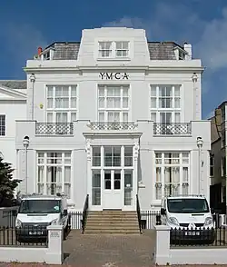 In 1884, the building was bought by Brighton YMCA.[9][14] In 1927, they carried out a major reconstruction: the building was used as a hostel for vulnerable men, and more bedrooms were added;[9] the exterior was rebuilt, removing the verandas and balconies;[15] and all remaining internal features except a petal shaped coving in the second floor lounge were removed or altered.[9][10][14]