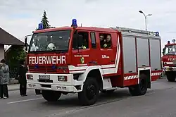 The naming of the 92 series (also adapted for later models of the 91) refers to the vehicle's gross weight, followed by an "S" or "M" for civilian or military versions, followed by a number denoting tens of horsepower. Thus, a 210 PS 16-ton model would be called 16S21. Lighter models used Steyr's own transmissions, while heavier versions received ZF units. The axles were all Steyr's own, axles being a mainstay of Steyr's production.[5] The 92 series cab was also used by Britain's ERF beginning in the late 1980s, for their medium-weight ES series.[6] Coincidentally, ERF became part of MAN in 2000.