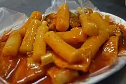 Street food in South Korea (Korean한국의 길거리 음식) has traditionally been seen as a part of popular culture in Korea. Historically, street food mainly included foods such as eomuk, bungeo-ppang and tteok-bokki. Street food has been sold through many types of retail outlets, with new ones being developed over time.