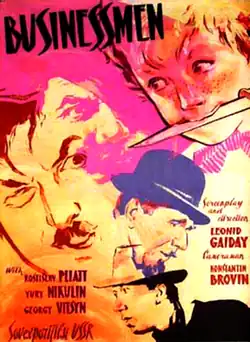 Strictly Business (Russian: Деловые люди, romanizedDelovye lyudi, literally "Industrious people") or also known as Businessmen is a 1962 Soviet black-and-white comedy-drama film directed by Leonid Gaidai. Its plot consists of three unrelated novellas based on short stories by O. Henry: "The Roads We Take", "Makes the Whole World Kin", and "The Ransom of Red Chief".