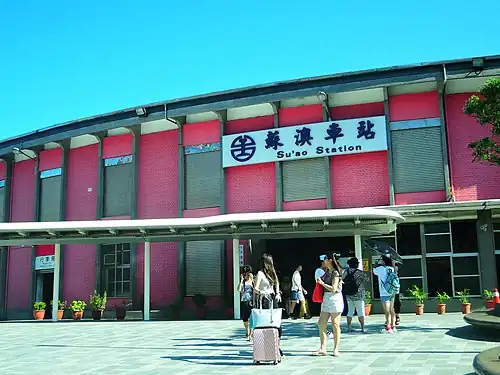 Su'ao (Chinese: 蘇澳車站; pinyin: Sūào Chēzhàn) is a railway station on the Taiwan Railways Administration Yilan line. It is located in Su'ao Township, Yilan County, Taiwan and is the southern terminus of the Yilan line.