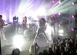 Charli XCX's first high-profile performance of "Boom Clap" was at the 2014 MTV Video Music Awards pre-show on 24 August.[28] She later sang "Boom Clap", followed by "Break the Rules", at the 2014 MTV Europe Music Awards, the American Music Awards of 2014, and on Saturday Night Live.[29][30][31] In support of the album, Charli XCX embarked on the Girl Power North America Tour in 2014. The tour kicked off in Orlando, Florida, on 26 September and concluded in San Francisco, California, on 25 October.[32] She also performed the tracks from Sucker as part of her set for the Jingle Ball Tour 2014, and supported Katy Perry on European dates of her Prismatic World Tour in February and March 2015.[33] Charli XCX further promoted the album by embarking on an eight-date UK tour in 2015, which began in Brighton on 24 March and ended in Birmingham on 2 April.[34]