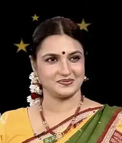 Sukanya (born 25 November 1972) is an Indian actress who mainly worked in Tamil and some Malayalam, Kannada, Telugu and Hindi films. She is also a trained Bharatanatyam dancer, and has worked as a composer, lyricist and voice actress.