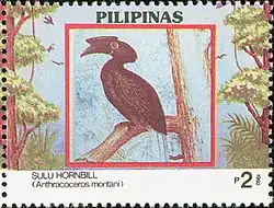 Sulu hornbill featured in a 1992 Philippine stamp of endangered species