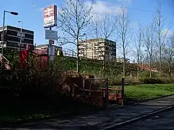 The original Summerston station (closed in 1951)[1] was located about 1+12 miles (2.5 km) to the north of the present station on the defunct and dismantled Kelvin Valley Railway line between Maryhill and Kilsyth; the current one is one of five built for the Maryhill Line project by British Rail in 1993.