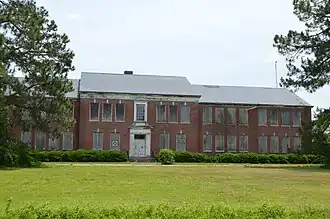Sunbury High School is a historic high school complex located at Sunbury, Gates County, North Carolina. The complex consists of five buildings built between 1908 and about 1950. The main building was built in 1937, and is a two-story, Colonial Revival-style brick building. It consists of a seven bay, side-gabled main block flanked by two, long, slightly lower two-story, side-gabled wings. Also on the property is a two-story, side-gable frame, Colonial Revival-style Teacherage, built about 1940; a one-story, six-bay, "T-shaped", Agricultural Building built about 1908; a Gymnasium built about 1950; and a Pump-House/Oil House, built about 1941. The complex served as a high school until 1962. It housed an elementary school until it closed in 1997.[2]