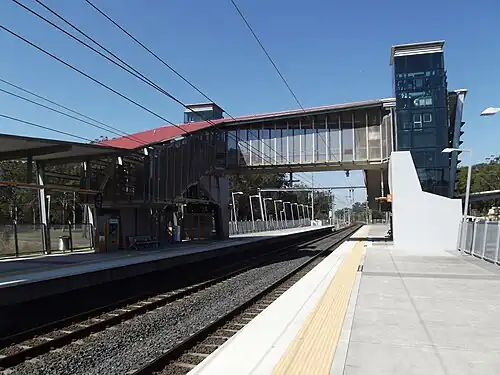 On 14 April 2009, a new 14-kilometre (8.7 mi) double-track alignment from Caboolture to Beerburrum opened. A four kilometre section of the old line immediately north of Caboolture was retained for use as a passing loop, with the remainder of the old line lifted. This saw new stations at Elimbah and Beerburrum built. Glasshouse Mountains, Beerwah and Landsborough stations have all received major work including platform extensions and lifts.[4][5] The line is scheduled to be duplicated to Landsborough by 2021.[6]