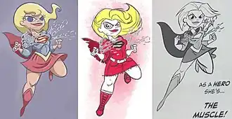 The process of the design of Supergirl. 2012 (left), 2016 (middle), 2019/2018 (right)