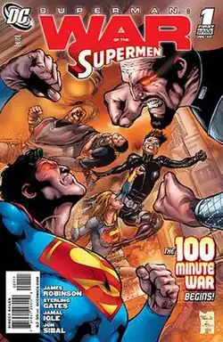 ![]() Cover of War of the Supermen #1 (July 2010), art by Eddy Barrows. | |
