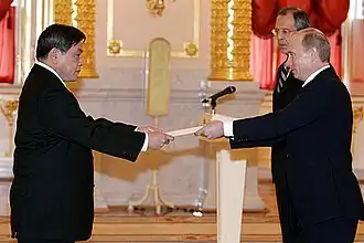1. ^ Список руководителей дипломатических и консульских представительств зарубежных государств в России (in Russian). Ministry of Foreign Affairs (Russia). Retrieved 2008-08-06.
