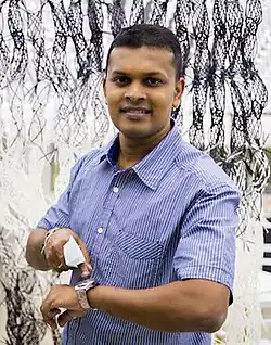 Suranga Nanayakkara (born 1981) is a Sri Lankan born computer scientist and inventor.[1] As of 2021, he is the director of Augmented Human Lab and associate professor at the National University of Singapore. Before moving to Auckland in 2018, he was an assistant professor at Singapore University of Technology and Design. He is best known for his work on FingerReader[2][3][4][5] and Haptic Chair.[6] His research interests include Wearable Computing, Assistive Technology, Ubiquitous computing, AI, Collective intelligence and Robotics. MIT Technology Review honored Nanayakkara as one of the Innovators Under 35 for Asia Pacific Region 2014.[7][8]