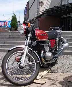 The Suzuki GT550 is a three cylinder, two-stroke, air-cooled 1970s-era motorcycle in Suzuki's "Grand Touring" GT series. Three Grand Touring models including the GT380 and GT750 and were originally offered for sale with the beginning of the 1972 model year (MY) with the 550 called "Indy" for the North American market.[4] In Suzuki's numbering scheme, automobile race tracks identify each of its 3-cylinder GT bikes for the North America market: Sebring for the 380, Indy for the 550 and Le Mans for the 750.