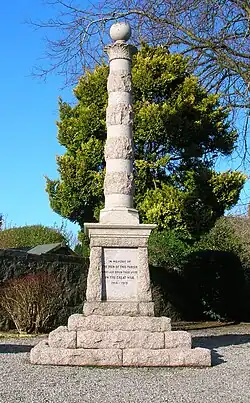 Hugh Glover held the lands of Townend circa 1701-4 and in 1733 William Kelso of Dankeith sold the lands to George Boyd of East Overloan Farm. William Hay Boyd, Esq. of Her Majesty's 20th Regiment of Infantry in the Crimea[29] and was the owner of Townend House (NS 37652 31552) and estate in 1839.[24] Townend is an 18th-century building with a Victorian Italianate wing. A dated lintel in the walled garden may have come from an earlier building on the site; the old stables, were converted into a small dwelling in the 1960s.[30] In recent times Townend Cottage has functioned as a nursing home,[16] Townend Cottage, circa 1810, situated in the village was its former dower house. The Hay-Boyds gave land for the village hall, a school, and a garden next to the church.[29]