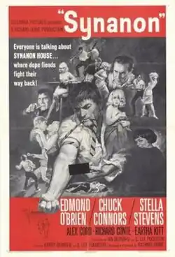 Synanon (a.k.a. Get Off My Back!) is a 1965 American drama film directed by Richard Quine and starring Chuck Connors, Stella Stevens, Alex Cord, Richard Conte, Eartha Kitt and Edmond O'Brien. It featured a screenplay by Ian Bernard and was filmed at Synanon in Santa Monica, California.[2]