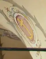 In the sanguine field there is a golden crescent with a golden cross dominating it. In the crest a peacock's tail or feathers.