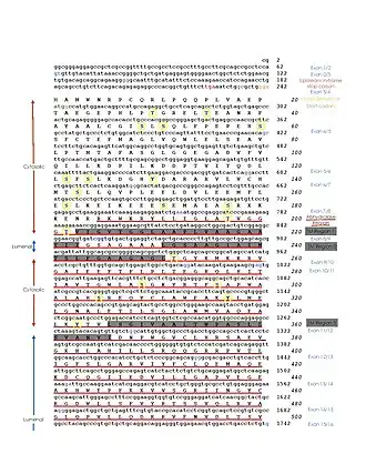 There are twenty mRNA transcript variants (X1-X20) produced through different combinations of sixteen different exons.[7] The most common variant is X1, which includes all exons and spans the entire 118,172 base pairs.[5]