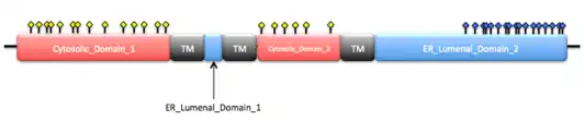 Many phosphorylation sites were predicted for the two cytosolic regions of TMCO4.[11] O-linked glycosylation sites were predicted to occur in the end of the second lumenal region of TMCO4.[12] These predicted sites can be seen on both the schematic illustration of TMCO4 found above, or in the conceptual translation of TMCO4 found below.