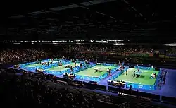 Table tennis at the 2016 Summer Olympics in Rio de Janeiro took place from 6 to 17 August 2016 at the third pavilion of Riocentro. Around 172 table tennis players (equally distributed between men and women) competed in both the singles and team events.[1][2] Table tennis had appeared at the Summer Olympics on seven previous occasions beginning with the 1988 Summer Olympics in Seoul. In addition to men's and women's singles, the team events were staged for the third time since replacing doubles events at the 2008 Summer Olympics in Beijing.