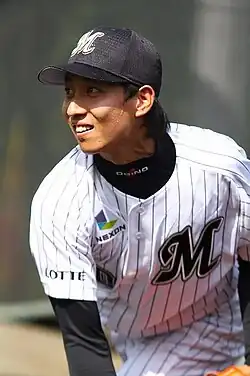 Tadahiro Ogino (荻野 忠寛, Ogino Tadahiro; born April 26, 1982 in Tokyo, Japan) is a Japanese Nippon Professional Baseball with the Chiba Lotte Marines in Japan's Pacific League.