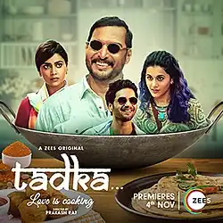 Tadka is a 2022 Indian Hindi-language romantic comedy-drama film directed by actor Prakash Raj, starring Nana Patekar, Ali Fazal,[1] Shriya Saran and Tapsee Pannu.[2] The story of the film is based in Goa and filming began in May 2016. It is a remake of the 2011 Malayalam film Salt N' Pepper.[1] The film was released on ZEE5 on 4 November 2022.[3]