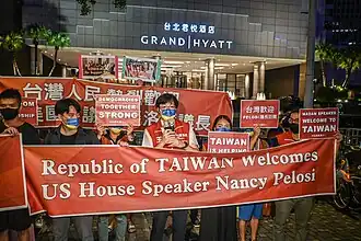 TSP welcoming U.S. House Speaker Nancy Pelosi's delegation outside Grand Hyatt Taipei
