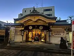 Takanawa Shrine (高輪神社, Takanawa Jinja) is a Shintō shrine which exists in Tokyo Minato Ward Takanawa 2-chome 14-18. It was established in the Meio years (1492–1501). January 24 of 2 of Koka a fire broke out, except to the stone gate and Otorii, all buildings burned. The present main hall of the shrine was built in 1980. The annual festival is September 10, and other ceremony the festival of being extinguished is hosted.