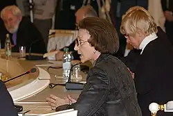 Tamara Morshchakova was a long time member of the Presidential Council for Civil Society and Human Rights, approx. since 2000s, when the Council's chair was Ella Pamfilova.[4][5] She resigned from the Council on 21 October 2019, when President Vladimir Putin had dismissed five core members of the Council (Higher School of Economics' professor Mikhail Fedotov,[6] political scientist Ekaterina Schulmann, lawyer Pavel Chikov, Higher School of Economics' professor Ilya Shablinsky, and lawyer Yevgeny Bobrov), saying that the former Council, that was intended for human rights, had disappeared, and she doesn't want to work in the new Council, if the Council is intended for other else tasks.[1][7][8][5]