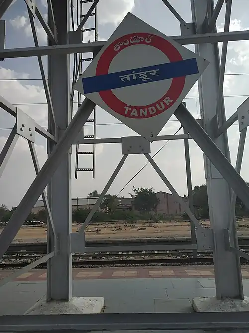 Tandur railway station (station code: TDU) is a fourth grade non-suburban (NSG–4) category Indian railway station in Secunderabad railway division of South Central Railway zone.[1][2][3] It serves Tandur in Vikarabad district of the Indian state of Telangana.[1] It was selected as one of the 21 stations to be developed under Amrit Bharat Stations scheme.[4]