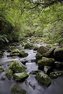 The Tautuku River[1] originates in the Maclennan Range of The Catlins in New Zealand. It continues through native bush for almost its entire length, including McLean Falls. Near its mouth at Tautuku Bay, just north of Tautuku Peninsula, the river flows through the Tautuku Estuary, a breeding ground for fernbirds.[2]