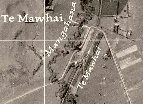 In 1912 a meeting asked for a loading bank, cattle yards, caretaker and goods shed and to change the name from Te Puhi to the same as the post office, Te Mawhai.[11] The name was changed,[12] a goods shed was added in 1915[13] and improved in 1916,[14] telephone came in 1921,[10] urinals were added in 1922,[15] £895 was spent on improving stock loading in 1929[10] and electric light came in 1933.[16]