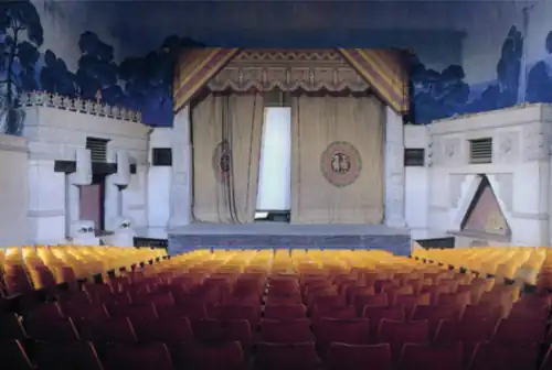 Teatro Lutgardita, 1994. The panoramic mural seen on the wall (that wraps around the front of the theatre) was painted by Fernando Tarazona.