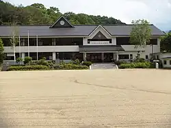 • Yumoto Junior High School (天栄村立湯本中学校; closed in 2023) - The building was two stories tall.[6] It began operations in 1947.[8] Its peak population was in the 1960s. A sharp population decline occurred after 2000.[6] Circa 2020 the population was five.[8] The population loss resulted in it closing in 2023, with its final graduating class having two students.[6]