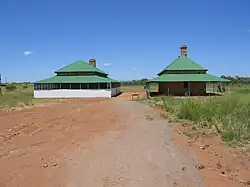The Tennant Creek Telegraph Station was built in 1872. It was first a temporary bush timber building but by 1875 had been rebuilt with locally quarried stone.[2] It operated as a repeater station as part of the Overland Telegraph Line which connected Darwin to Adelaide. It also operated as a government rations depot. By the 1920s it featured a blacksmith shop, cart shed, ration store, meat house, smokehouse and cellar. Warumungu people were employed at the station as cattlemen and slaughter-men. But the 1890s more than 100 Aboriginal people were living at the station. It was declared an Aboriginal Reserve.[3]