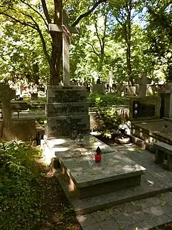 On 18 September 2012, on the orders of the District Military Prosecutor's Office in Warsaw investigating the Smolensk catastrophe, the body which had been buried in the grave of Teresa Walewska-Przyałkowska in the Powązki Cemetery in Warsaw was exhumed.[14] On 25 September, the prosecution announced that her body had been accidentally switched with that of Anna Walentynowicz who also died in the air crash and had erroneously been buried in the latter's grave.[15] On 2 October 2012, a second funeral was held for Teresa Walewska-Przyjałkowska. After a mass in the St. Karol Boromeusz Church, her body, previously buried in the Srebrzysko cemetery in Gdańsk-Wrzeszcz, was buried in a family tomb in the Powązki cemetery (section 305-5-17/18).[16][17]