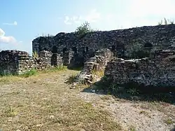 The Tetovo Fortress (Macedonian: Тетовско кале; Albanian: Kalaja e Tetovës) is a ruined fortress and archaeological site in Tetovo, North Macedonia. Because of its location on a hill called Baltepe, it is also known as Baltepe Fortress. The fortress was built beginning in 1820 under Abdurrahman Pasha, who also reconstructed the Šarena Mosque. On the site previously stood a monastery dedicated to Saint Athanasius. The fortress was built with a guest house, a dungeon, a kitchen, a dining hall, and a fountain. Water did not flow from the fountain, reportedly, until Abdurrahman Pasha was summoned to Constantinople in 1843 on suspicion of treason. After his departure from Tetovo, the fortress fell into ruin.[1] It is believed that three escape tunnels were built from the fortress: one to the city center, one to the upper part of Tetovo, and one to the village of Lavce.[2]