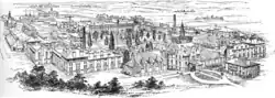 In 1866, a hospital was added to supplement the existing almshouse.[14] In that same year, Tewksbury first began accepting what were known as the "pauper insane".[5] In 1879, Tewksbury was reorganized, and its population separated according to type of illness: 40% of the beds were given over to the mentally ill; 33% to almshouse inmates, and 27% to hospital patients. By the end of the 1880s, Tewksbury had become solely a hospital, serving a combination of mentally and physically ill.[14] And by the 1890s, the original 1854 wooden almshouse building had been torn down, and the remaining almshouse buildings were repurposed for hospital use. Some of these would remain standing until the 1970s.[15]